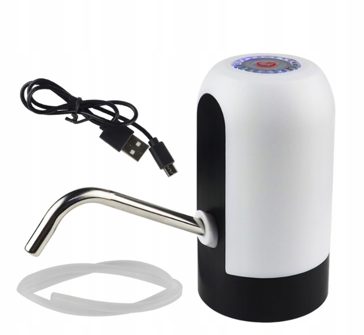 Электрический водяной насос. Он не требует источника питания от электрической сети (встроенный аккумулятор, заряженный с использованием обычного USB -порта). Компактные размеры облегчают соответствие дистрибьютора с устьем цилиндра. Стальная трубка облегчает наличие воды в стаканы. Длинная всасывающая трубка и высокая эффективность ускоряйте накачку. Диспенсер облегчает наличие воды в очки. 5W