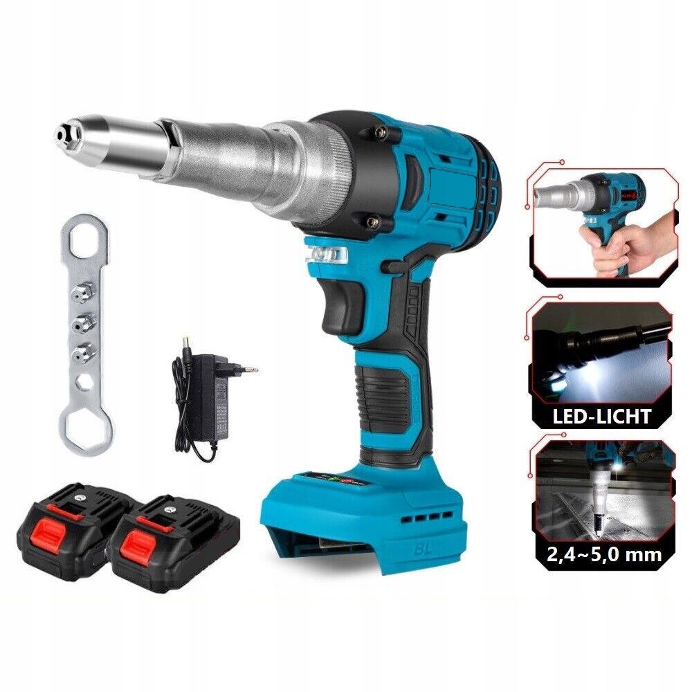 ЭЛЕКТРИЧЕСКИЙ БЕСЩЕТОЧНЫЙ ЗАКЛЕПОЧНИК 2×AKU 18V 20000N 1500MAH