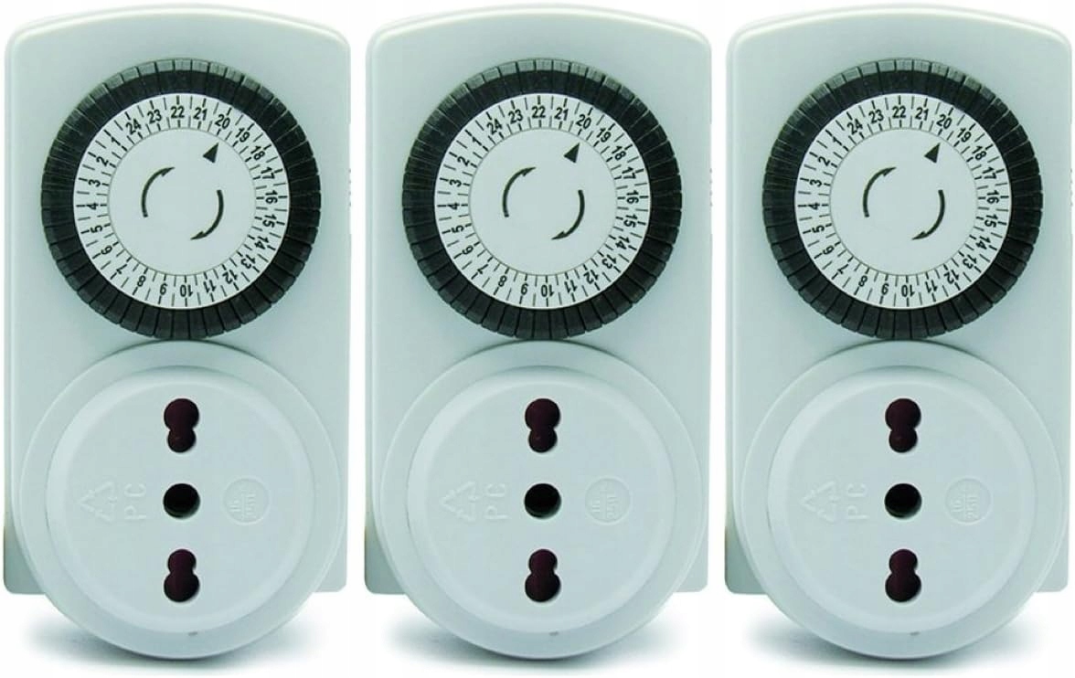 Набор из 3 мини -механических программистов таймеров - 48 ежедневных программ включения/выключения - Минимальная установка 30 минут - ручной переключатель/переключатель.