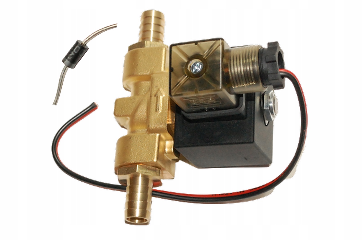 Снаряженный, т.е. с присоединенным кабелем (20 см), подключенным к кубу, и припаянным диодом, защищающим от скачков напряжения при выключении катушка (защищает другие приемники тока перед скачком напряжения). Электромагнитный клапан готов к подаче напряжения (красный+, черный -).