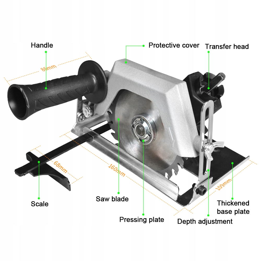 3. Детали электрической циркулярной пилы и угловой шлифовальной машины можно использовать отдельно, вы можете собирать или разбирать их в соответствии с вашими потребностями.