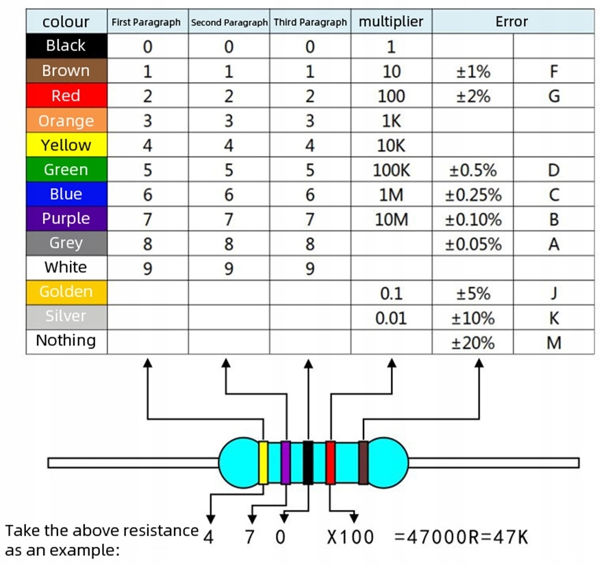 Схема сборки системы напечатана на доске. Необходимо обратить внимание на полярность в случае таких элементов, как конденсаторы, диоды, транзисторы. В случае со светодиодами более длинная ножка – это плюс +, у большинства элементов свои параметры описаны на корпусе. Резисторы могут иметь полосовую маркировку; их сопротивление и допуск можно прочитать с помощью калькуляторов, доступных в Интернете, или измерить с помощью мультиметра. Порядок сборки обычно произвольный, в зависимости от планировки, сначала собираем самые мелкие элементы.