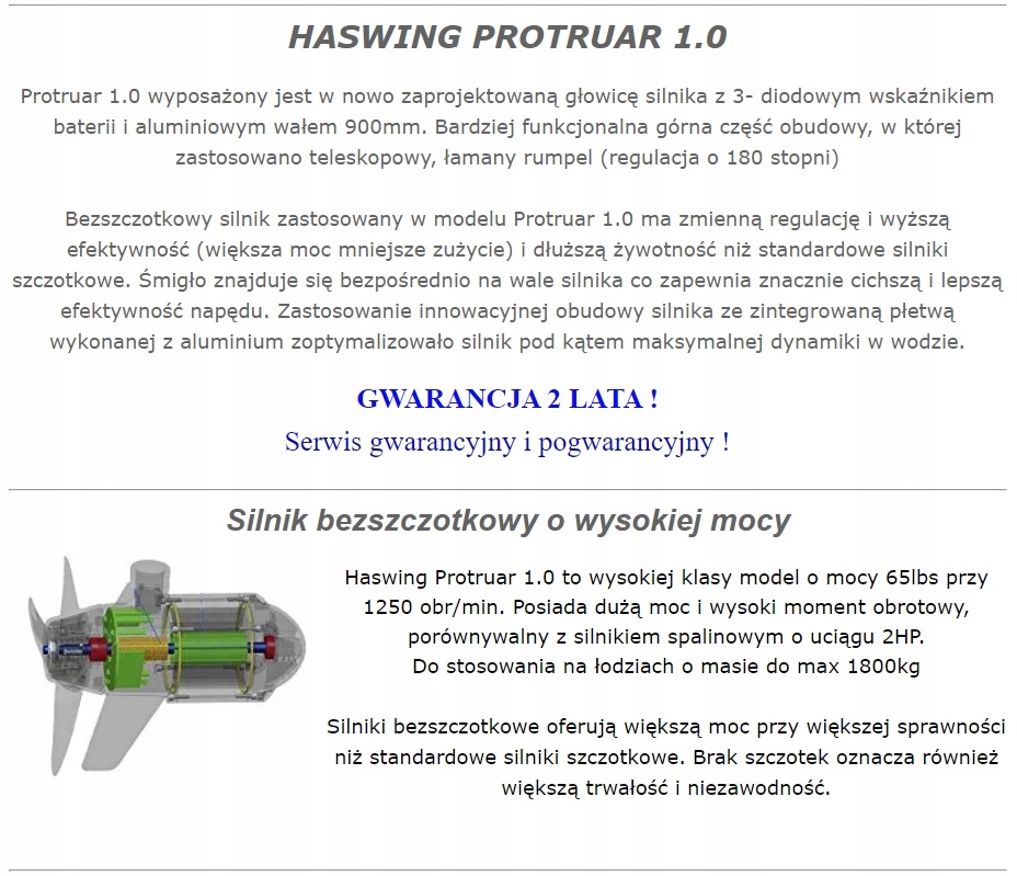 Електродвигун Haswing Protruar 1.0 65 фунтів 12 В