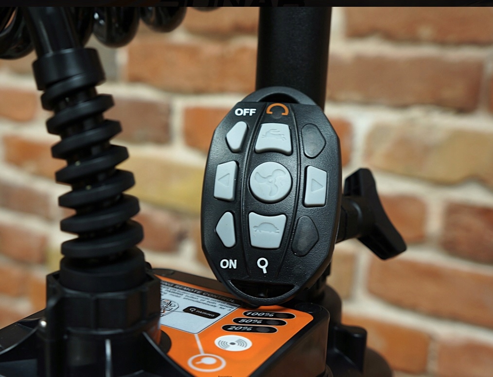 Двигателем управляют по беспроводной сети с помощью пульта дистанционного управления, который можно закрепить на запястье или удочке, оставляя руки свободными.