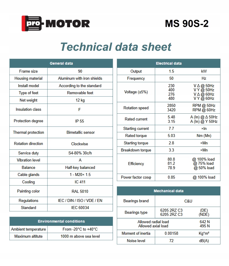 Електродвигун Promotor MS 1.5кВт 2800 об/хв. 90 B5