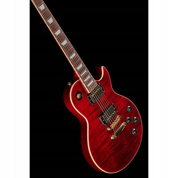 Все это дополняется позолоченной фурнитурой DLX, бриджем Tune-O-Matic и Black Cherry Flame. Глянцевое покрытие, которое чрезвычайно эффектно смотрится на сцене.