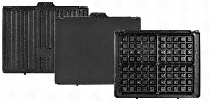 В комплект входит набор пластин для гриля – профилированные или плоские гриль-плиты и вафельные пластины