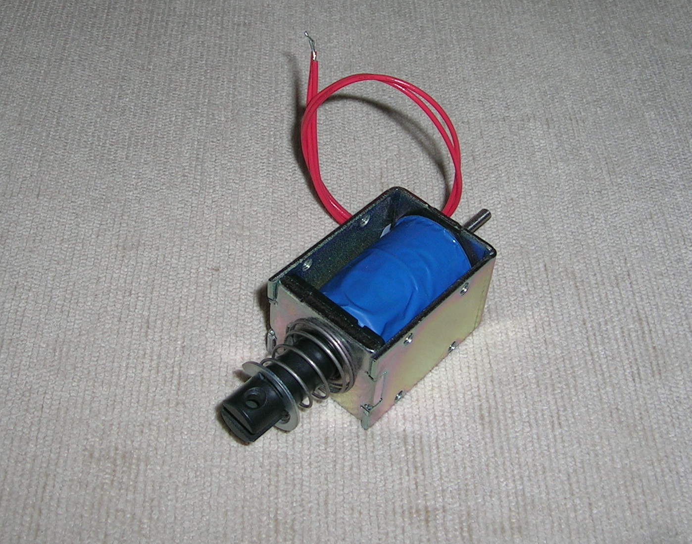 электромагнит с отталкивающей пружиной и фиксатором выдвижения.