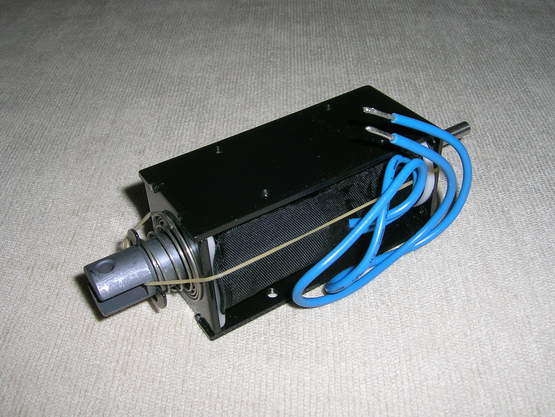 Электромагниты снабжены возвратными пружинами и плунжером, выдвинутым и размещенным на другой стороне корпуса. Крепление винтами, ввернутыми в резьбовые отверстия рамы, составляющей корпус.
