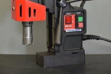 Модель Pro-40 оснащена специально разработанным двигателем и 1-скоростной передачей. Оборот двигателя 440 об / мин оптимизируется, чтобы правильная скорость работала с резаками HSS до 1 40 мм и цилиндрическими обмотками до 16 мм. Жесткая конструкция, оптимизированная с использованием программного обеспечения FEA (анализа конечных элементов), расширяет срок службы инструмента. Компактный дизайн наряду с инновационным интеллектуальным магнитом с уменьшенным весом делает его легкой машиной. Электромагнитное упражнение PRO-40 обеспечивает максимальную силу удержания на тонких материалах благодаря проверке формы магнитного поля (MFSC). Тренировка и оператор защищены от работы над слишком тонким элементом, используя магнитную систему адгезии (MPAC). Magnetic Drill Pro-40 также оснащена магнитной базой энергией (ESB), которая потребляет только 50% его мощности, когда двигатель не работает.