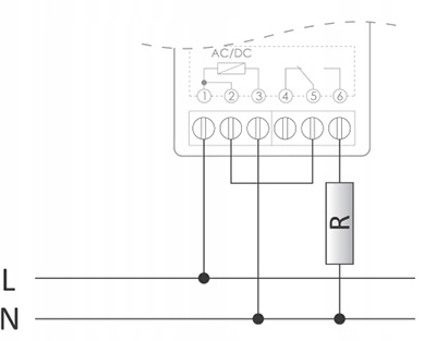 обеспечивая напряжение мощности для контактов 1-3 вызывает реле (закрытие контакта между зажимами 5-6). Когда мощность выключена, контакт между 4-5 зажимами закрыт.