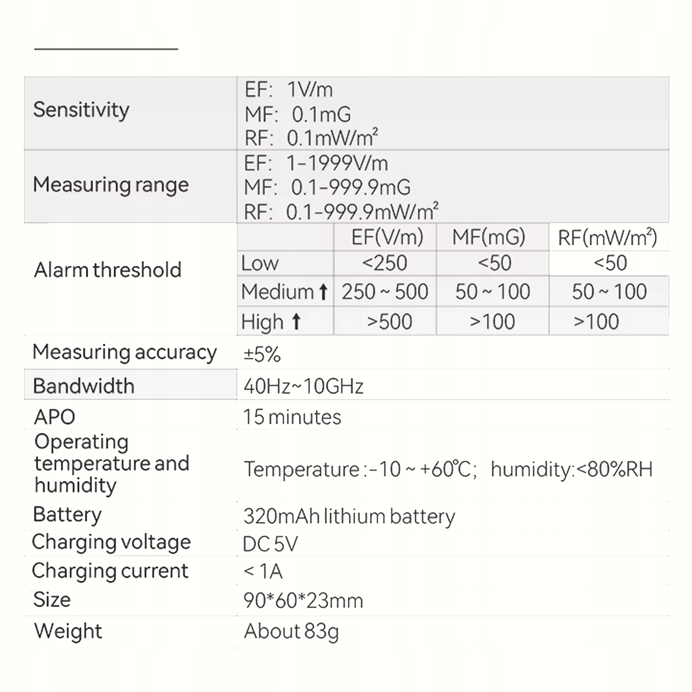 ✅ Верьте функциям: h1> - Универсальность: b> одно устройство для одновременного измерения электрического (EF), магнитного (MF) и радио (RF). Дисплей: Графический ЖК -экран с трендами с уровнем радиации и значениями.