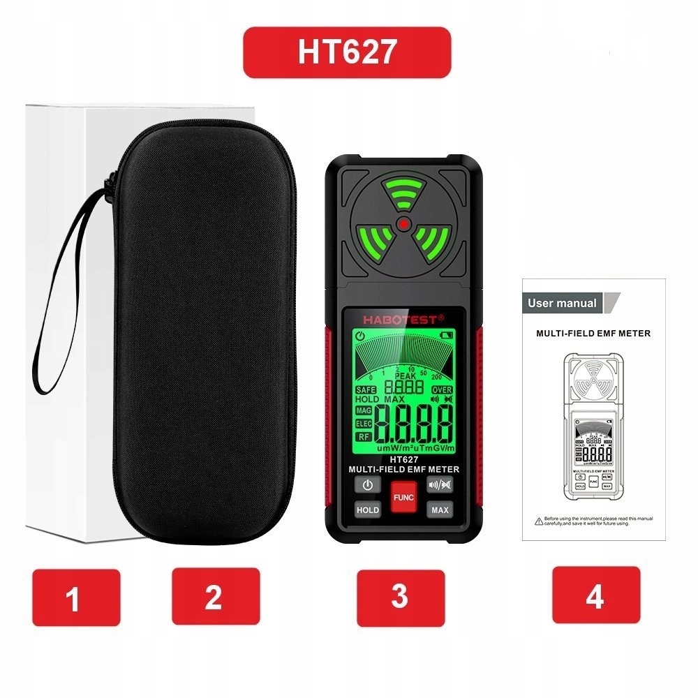 habotest ht627-это профессиональный счетчик электромагнитного поля, предназначенное для измерения интенсивности электрического и магнитного поля в различных средах. Измеритель прост в использовании и имеет широкий диапазон измерения, что делает его идеальным инструментом для людей, которые заботятся о своем здоровье и безопасности.