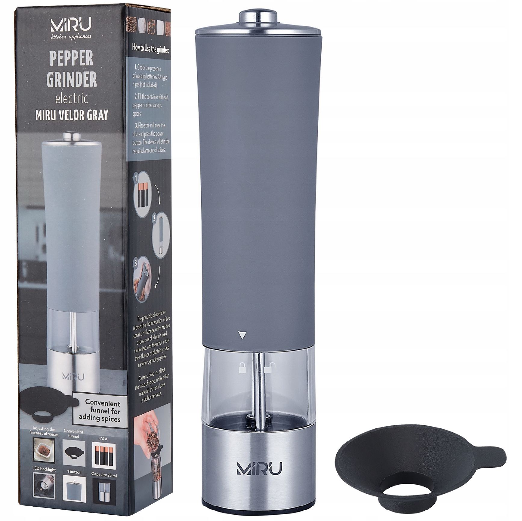 Электрическая мясорубка MIRU для измельчения перца, соли и других специй – незаменимый инструмент, облегчающий повседневную деятельность на кухне. Благодаря простоте использования и высокой функциональности вы сможете получить молотые специи идеальной толщины за секунду.