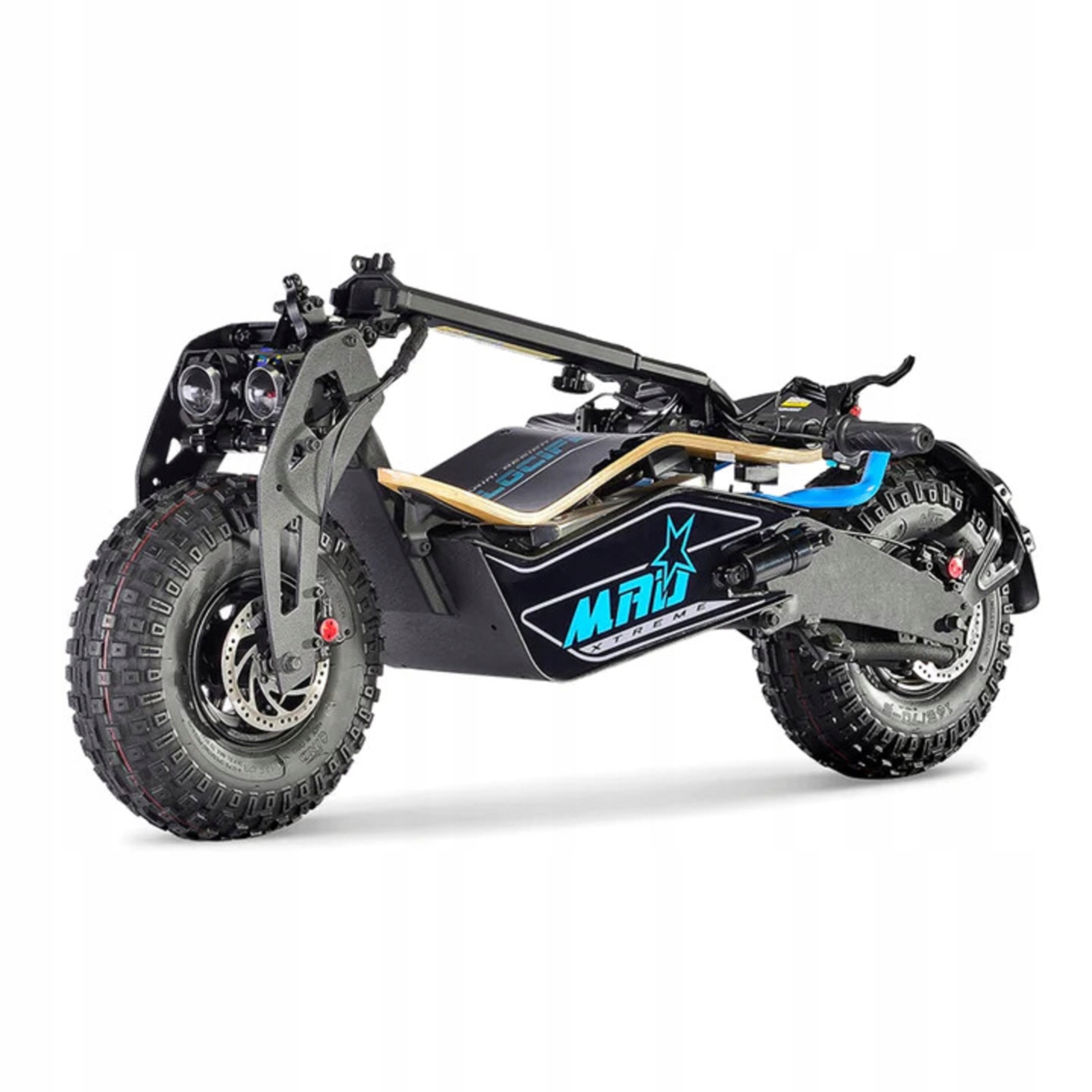 - двойная фара + задний фонарь (светодиодное освещение - аналогично установленному на мотоциклах)
