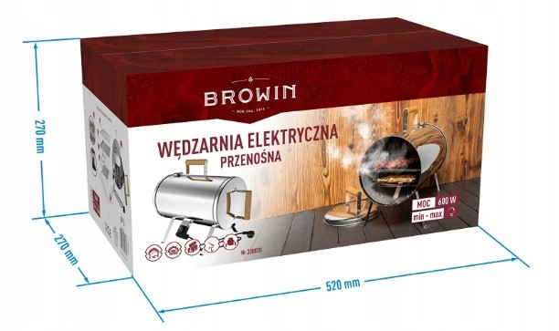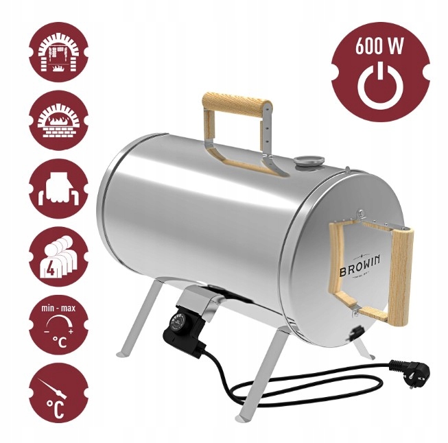 Электрическая дымка 2IN1 Портативная духовка 330020 Browin H1> - дымовая коптильна и духовка в одной электрической дымке с использованием кадров и для выпечки без выпечки. мобильность устройства. Смокультуру можно легко отправиться в поездку.