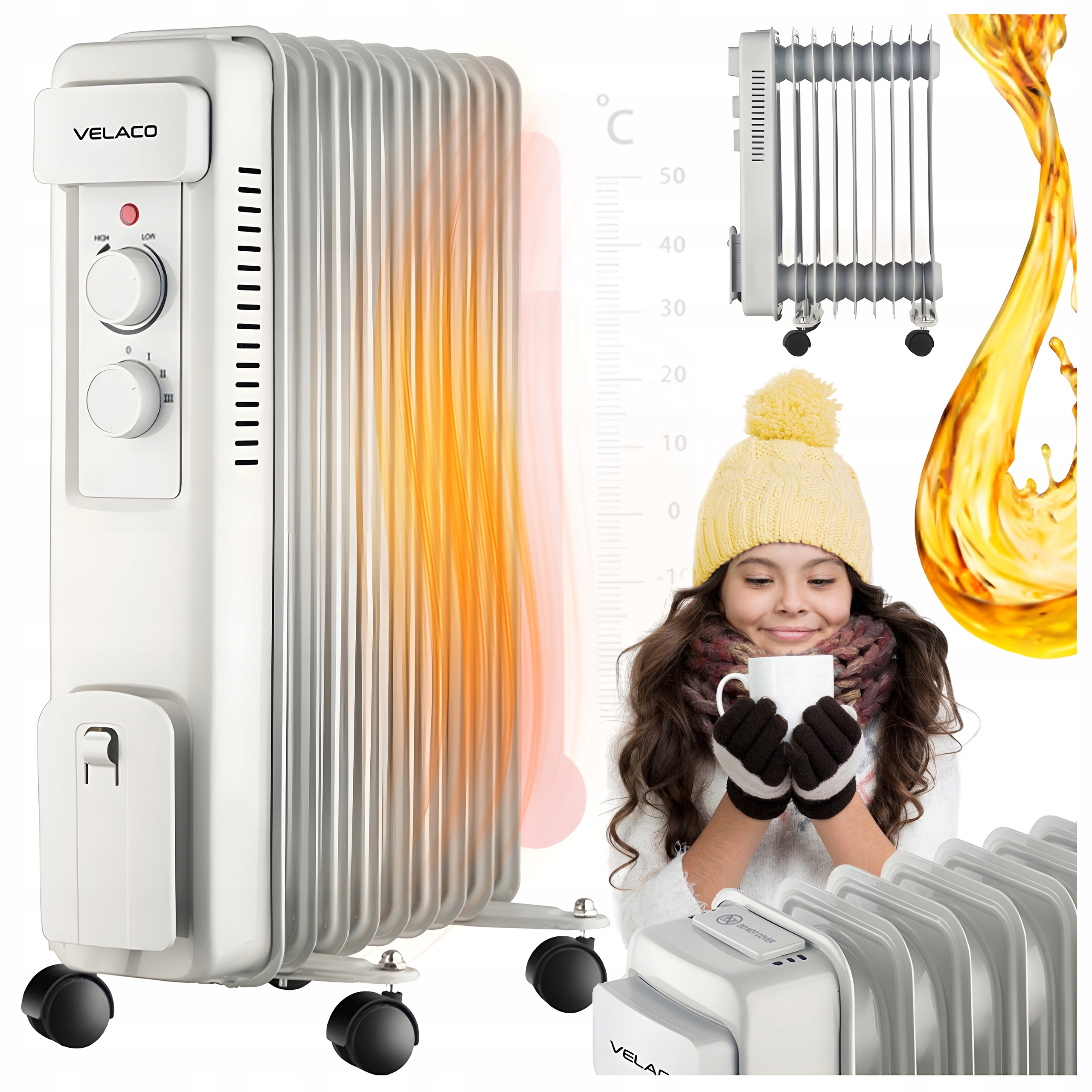 Электрический масляный радиатор Velaco — эффективное отопительное устройство, быстро обогревающее любое помещение. Его современный дизайн и высокое качество изготовления позволяют ему идеально вписаться как в домашний, так и в офисный интерьер, придавая ему элегантность. Прочная металлическая конструкция обеспечивает устойчивость к повреждениям и обеспечивает долгий срок службы. Управление радиатором простое и интуитивно понятное благодаря расположенным сбоку ручкам, а три уровня мощности позволяют регулировать температуру в соответствии с вашими индивидуальными потребностями. Безопасность использования повышается за счет защиты от перегрева. Дополнительным преимуществом является простота перемещения радиатора благодаря четырем колесам и практичной ручке для транспортировки. Благодаря компактным размерам он идеально подходит для небольших помещений, не занимая при этом много места.