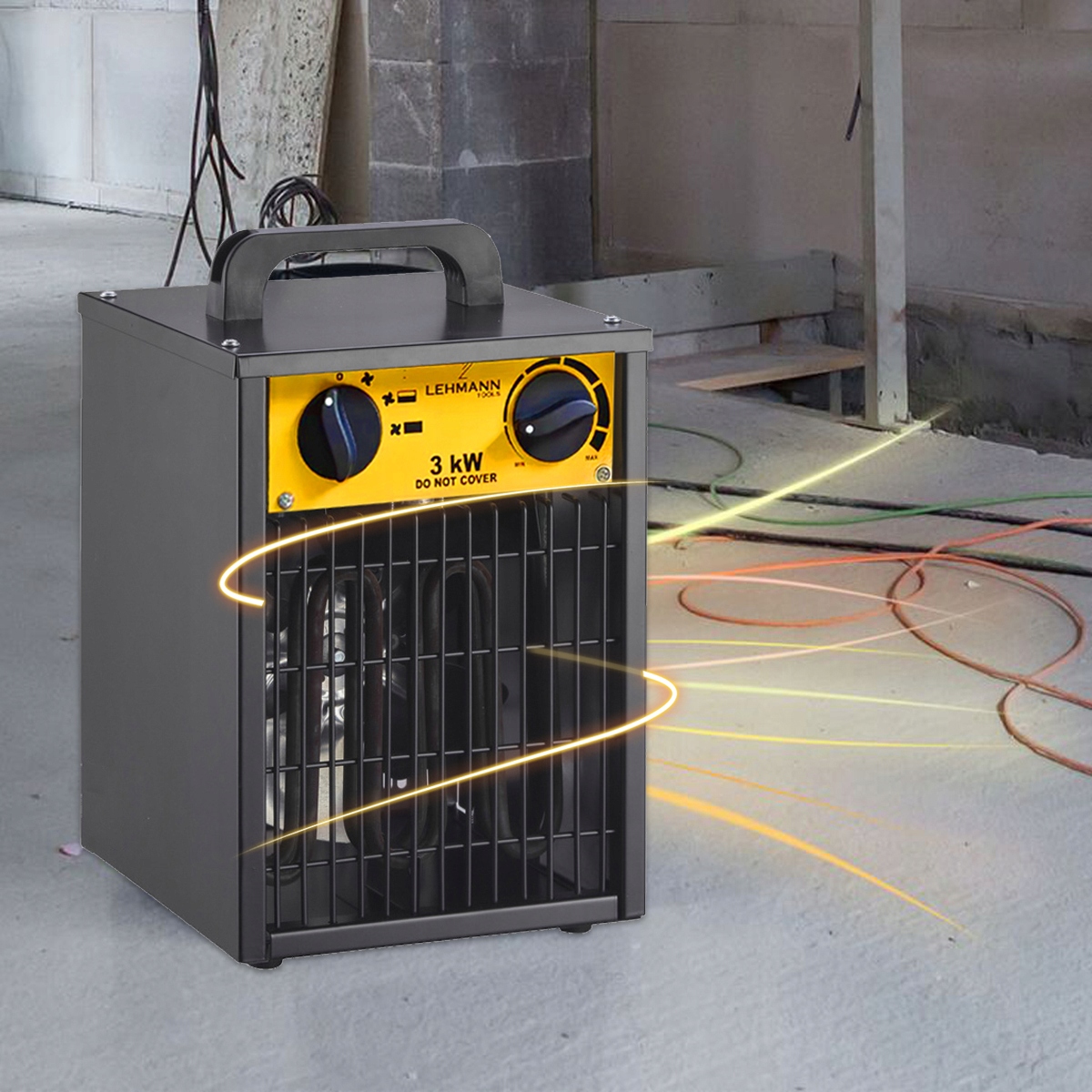Мощность обогревателя в 3000 Вт гарантирует его безупречную работу, обеспечивая быстрое и эффективное повышение температуры даже на складах и в гаражах. Благодаря высокой мощности, регулированию уровня нагрева и точному термостату вы можете настроить его работу в соответствии со своими потребностями, гарантируя комфорт и экономию энергии.