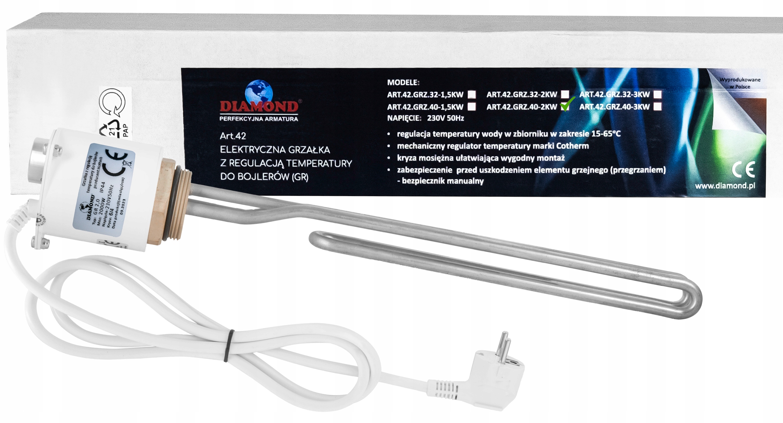 ЭЛЕКТРОНАГРЕВАТЕЛЬ С ТЕРМОСТАТОМ ДЛЯ КОТЛА GZ 6/4" 2KW 2000W 230V DIAMOND