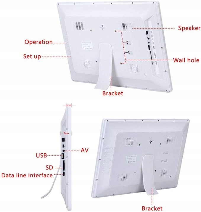 - Возможность крепления на стену: в рамке также предусмотрено место для крепления на стене, что обеспечивает еще большую гибкость при отображении фотографий и мультимедийного контента.