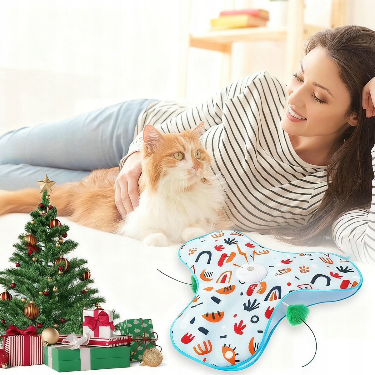 🐱🐱🐱Интерактивная игрушка для кошек с пружиной - перезаряжаемая, активируется от прикосновения и звуков мыши, идеальная игрушка для активных домашних кошек, наволочка с цветочным узором🎁🎁🎁