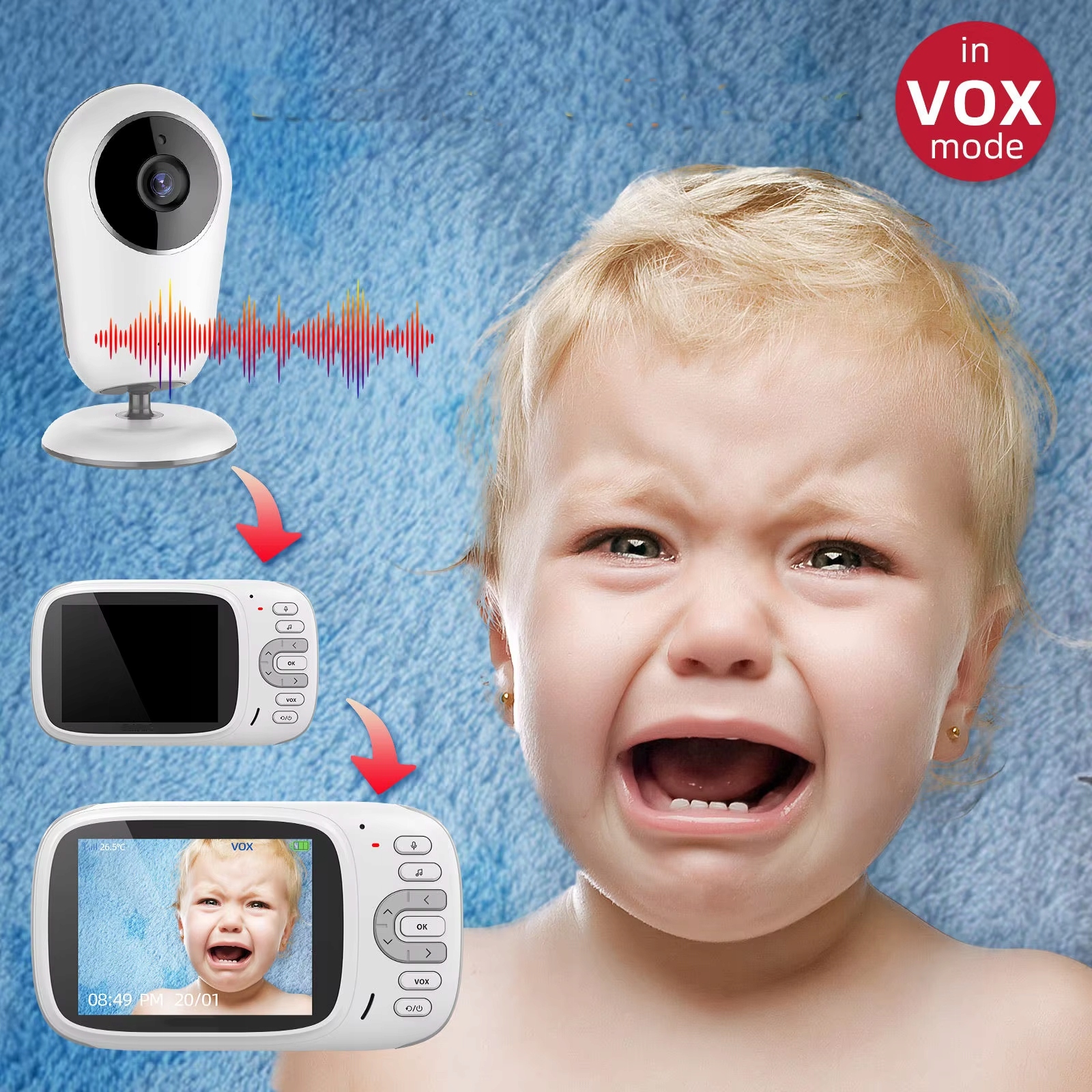 может быть включен и выключен вручную. В режиме Vox монитор автоматически перейдет в режим экономии энергии и спящий режим. После обнаружения плача ребенка он загорется, что позволит вам быстро увидеть плачущего ребенка