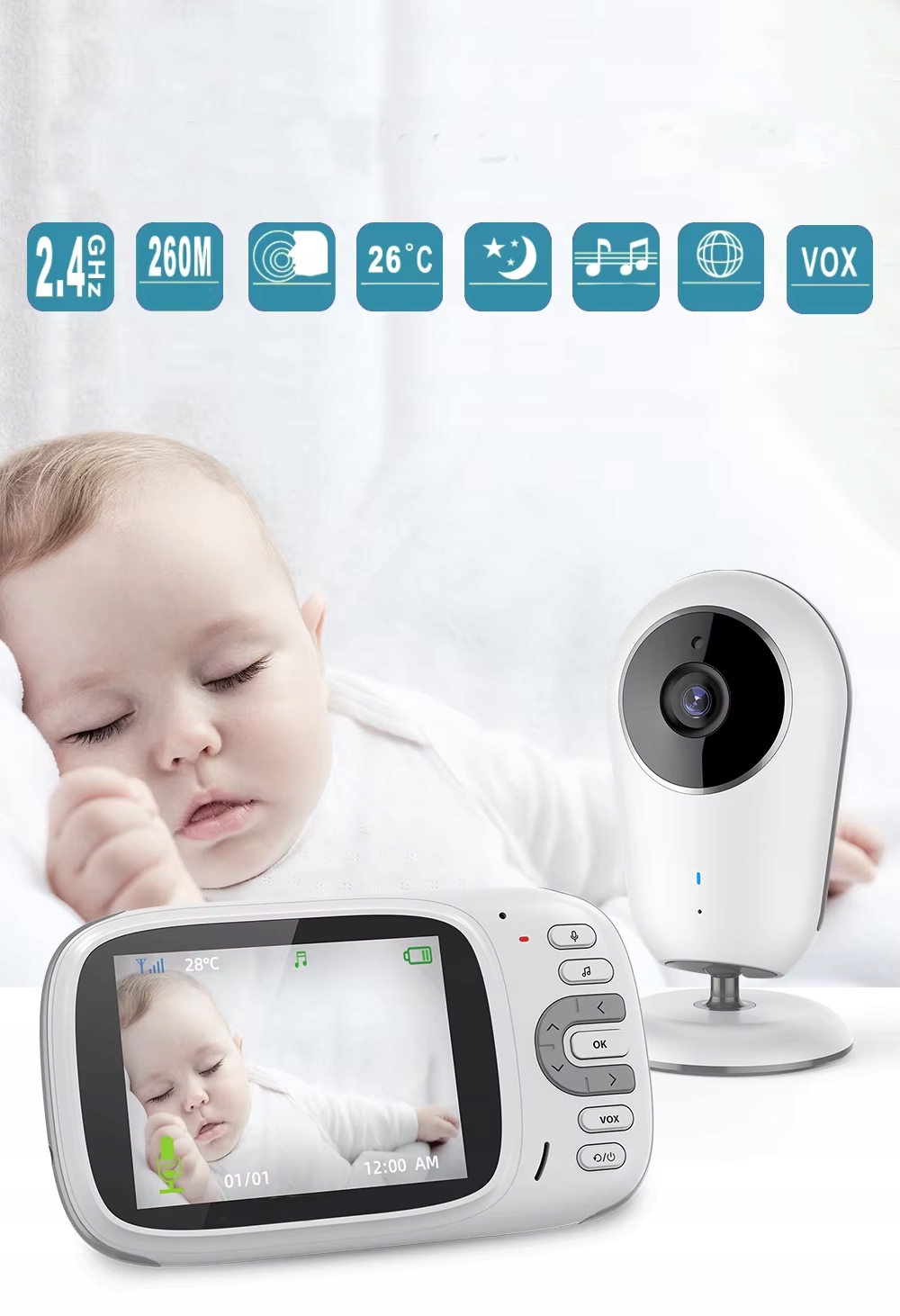 Boifun 3,2-дюймовый ЖК-дисплей для ребенка монитора ребенка, мониторинг температуры, двусторонний голос, Vox, автоматический IR h2> Ночное видение, детское монитор для детского сон.
