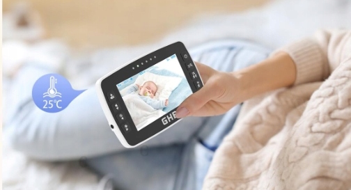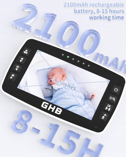 GHB Электронная радионяня 4,3 дюйма, ЖК-экран, вращение на 350°, датчик температуры, ночное видение, 2 видеокамеры для малышей.