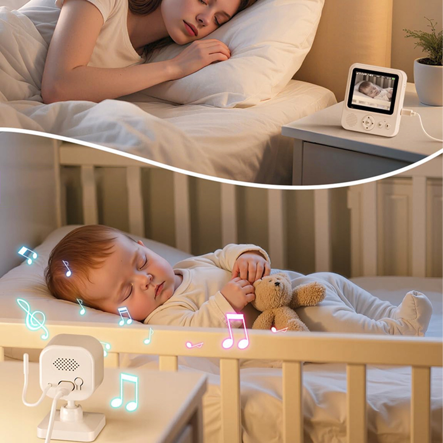 Успокойте малыша с помощью двусторонней связи или выберите одну из встроенных мелодий для сна, чтобы нежно убаюкать его.