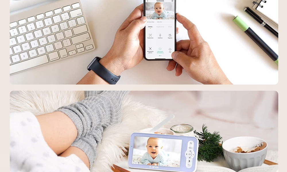 Babyonika BOIFUN предоставляет вам множество функций, включая двустороннюю голосовую связь; запись экрана, воспроизведение и снимки экрана; Индикация температуры, влажности, колыбельной и таймера кормления; и облачное хранилище SD-карт, а также множество других функций. Идеальный подарок для семей с новорожденными.