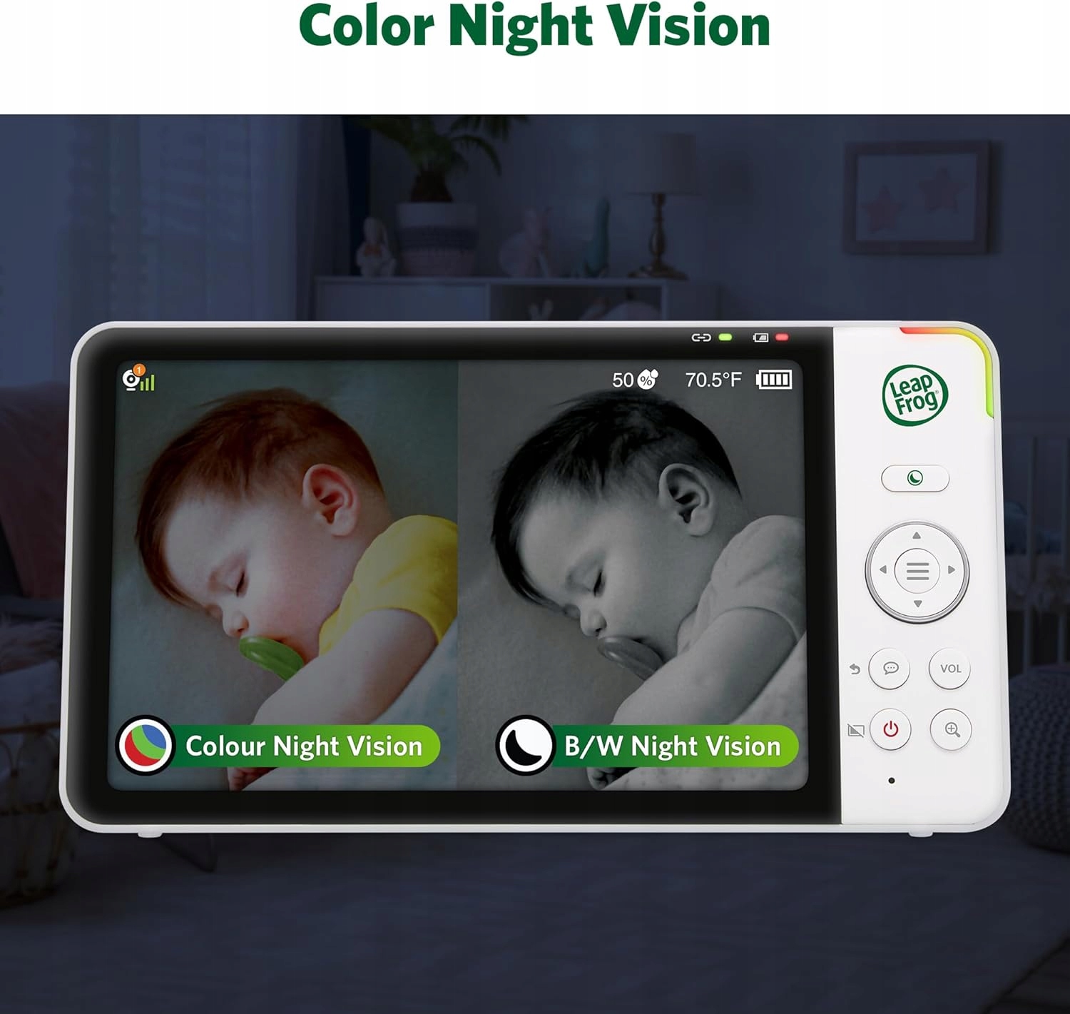 Набор содержит набор.Видеомонитор для детей Leapfrog LF920-2HD позволяет проверить, что происходит с вашим малышом в крупнейшей 7-дюймовой родительской единице в разрешении высокой определения 720p. Следите за комнатами сверху вниз благодаря 80-градусным углом наклона вертикально и из стороны в сторону благодаря возможности горизонтального вращения на 360 градусов. Увеличьте детали даже восемь раз по сравнению с их первоначальным размером из -за четкого диапазона цифрового масштабирования и следить за температурой комнаты и уровня влажности непосредственно с дисплея родительской единицы. Играйте успокаивающие звуки и успокаивающие мелодии, чтобы аккуратно уложить ребенка мягко спать. Благодаря адаптивному ночному свету, встроенному в камеру, вам не нужно включать острые огни, которые мешают мечте ребенка. Вы можете управлять ночным светом удаленно от родительского подразделения или непосредственно на подразделении ребенка, касаясь. Он отлично подходит для тонкого освещения во время чтения историй перед сном или обеспечивает достаточно света, чтобы помочь детям сохранять спокойствие в темноте. Кроме того, благодаря автоматическому инфракрасному цвету ночное видение, вы можете увидеть своего ребенка так же ясно, как и в течение дня, даже в очень плохом свете