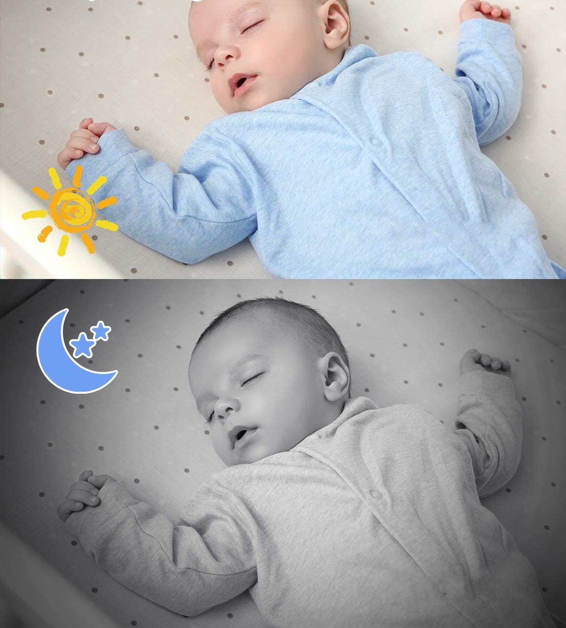 - Камера поворачивается на 350° по горизонтали и на 120° по вертикали, поэтому вы можете легко следить за движениями ребенка.
