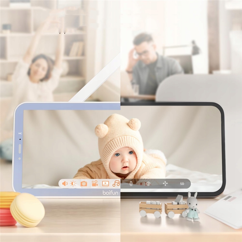- Когда монитор с камерой и ночным видением обнаруживает опасное движение, такое как побег из кроватки, как на экране, так и смартфоне будут уведомлены. Boifun может различать плач и обнаружение шума, можно обнаружить звук плача ребенка или шума поразительного кровати, и вы всегда можете обратить внимание на безопасность и статус своего подсластителя.