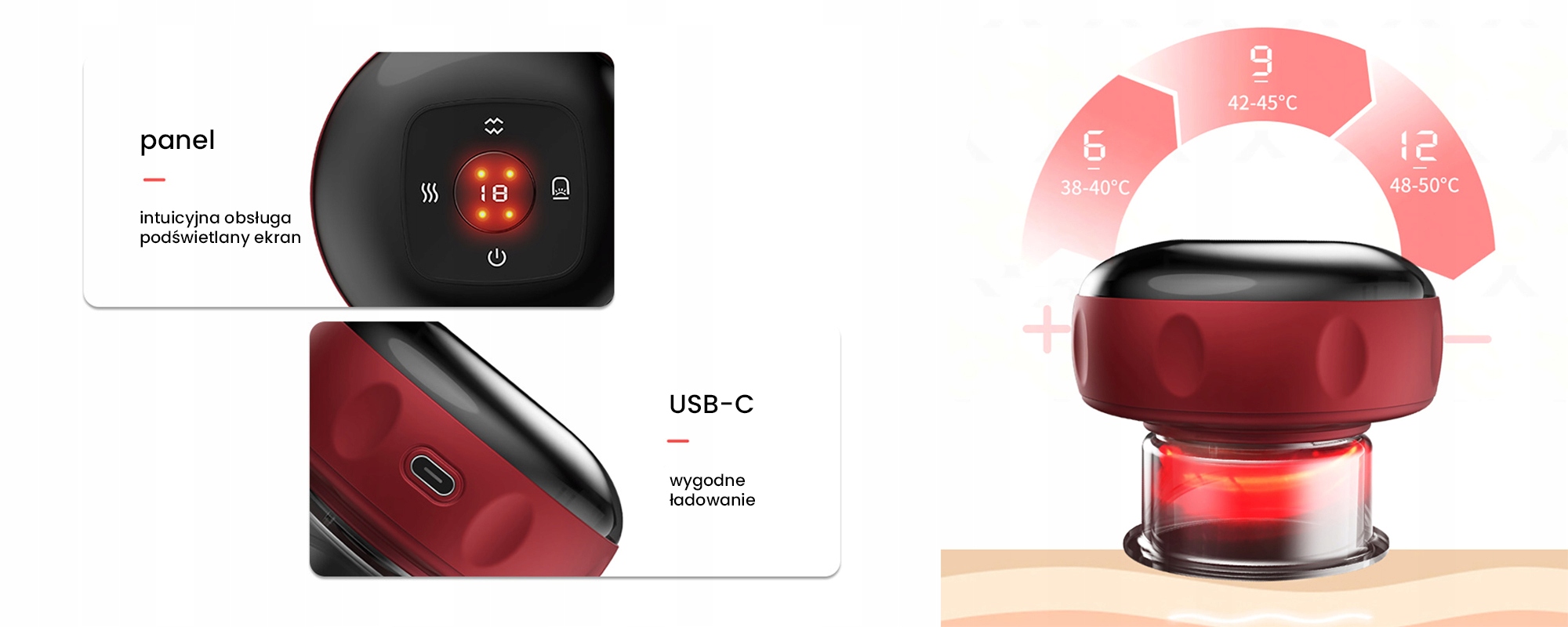 Китайская электронная чашка Humanas BB01 имеет 12-ступенчатую регулировку температуры. Устройство можно нагревать до 50°C. Использование банок в качестве горячего компресса поможет лучше воздействовать на мышцы и ткани, ускоряя кровоток и расслабляя напряженные мышцы. Тепловая терапия также поможет облегчить боль. Регулировка температуры позволяет индивидуально настроить лампу в соответствии с потребностями и предпочтениями пользователя. Это сделает ежедневные процедуры еще приятнее.