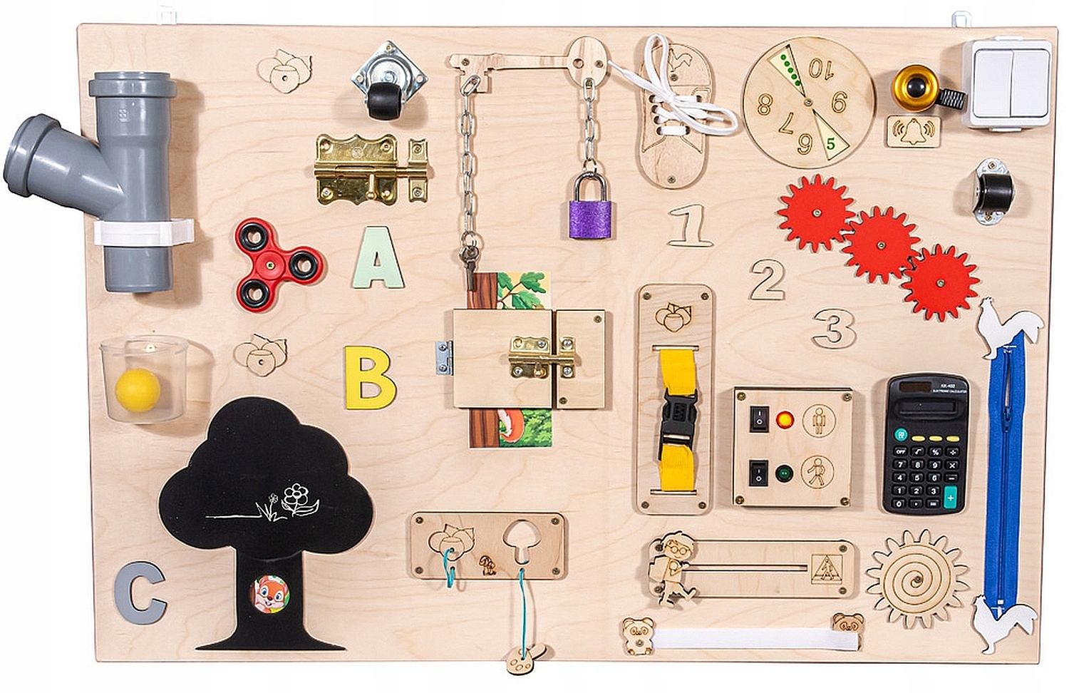 Сенсорная доска — отличная идея для творческого развлечения вашего ребенка. Обучение через игру – лучший способ правильного развития детей. Доска – идеальное место для отработки первых букв, цифр и правил пешеходного перехода. Правильно подобранные движущиеся и игровые элементы помогут вашему ребенку развить творческие способности и мануальные навыки. Кроме того, это будет стимулировать его изобретательность и побуждать его исследовать окружающий мир.