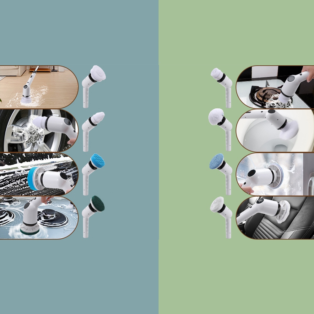 Наша беспроводная чистящая зубная щетка оснащена 9 сменными насадками, а также зарядным устройством и крючком. Идеально подходит для чистки вогнутых поверхностей, таких как ванны и раковины, чистки узких и труднодоступных мест, таких как укромные уголки и щели, а также для мытья полов, стекла, кафельных стен, поверхностей автомобиля, колес, автомобильных сидений, ванных комнат, кухонь, ванн, полов. , шины, мебель и плита.