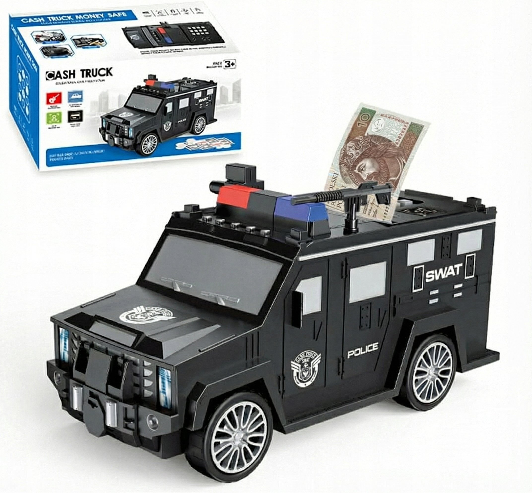 Электронная копилка, сейф, полицейская машина, PIN-код для банкнот, подсветка FACE ID