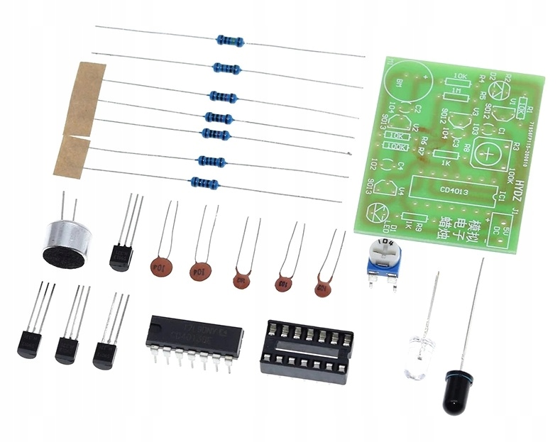 Схема сборки системы напечатана на доске. Необходимо обратить внимание на полярность в случае таких элементов, как конденсаторы, диоды, транзисторы. В случае со светодиодами более длинная ножка – это плюс +, у большинства элементов параметры описаны на корпусе. Резисторы могут иметь полосовую маркировку, их сопротивление и допуск можно прочитать с помощью калькуляторов, доступных в Интернете, или измерить с помощью мультиметра. Порядок сборки обычно произвольный, в зависимости от планировки, сначала собираем самые мелкие элементы.