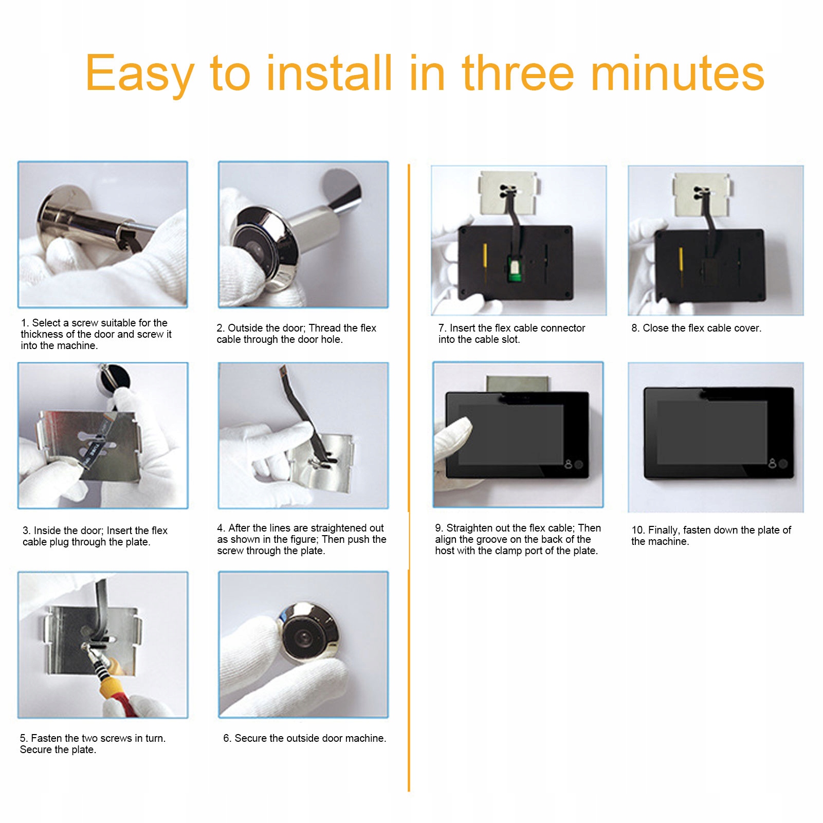 Функция: 1. С дисплеем: камера с HD -дисплеем 4.3 -INCH и HD -дисплеем обеспечивает четкое изображение и удобный надзор. Легко установить, диаметр погрузочной двери открывается 15-22 мм, толщина грузовой двери 30-110 мм.