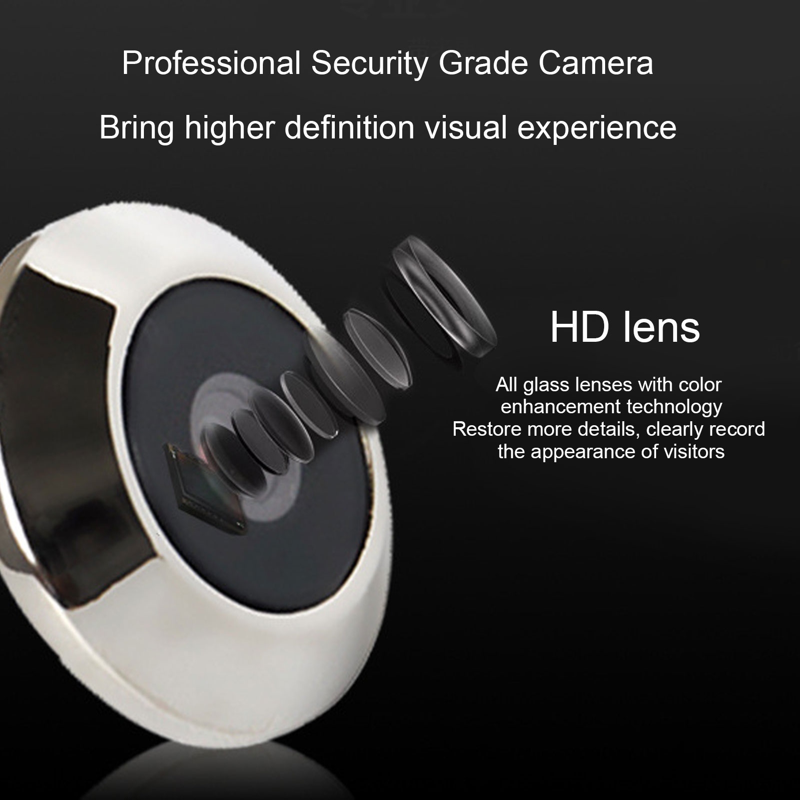 2. Широкий объектив: камера с козырьком в двери имеет широкий угол 145 °, что позволяет покрывать более широкий диапазон, не пропуская рога. Вы можете сфотографироваться и записать, чтобы запечатлеть все детали.