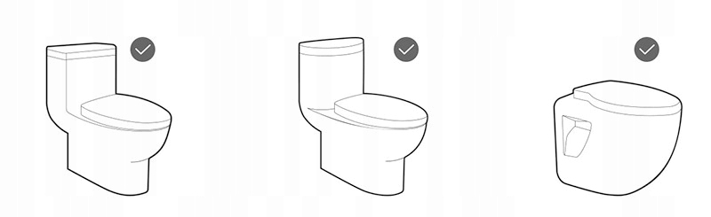Сиденье совместимо с большинством типичных унитазов. Чтобы убедиться, что он совместим с вашим корпусом, проверьте форму и размеры корпуса и сравните с фотографиями ниже.