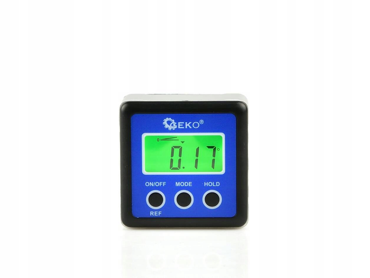 " Особенно полезно при установке машин, например Устройство имеет большой разборчивый освещенный дисплей. Функция удержания позволяет вам поддерживать текущее измерение на дисплее. Функция REF дает возможность сбросить угол в любом положении и эталонном измерении. Измеритель оснащен магнитом, помещенным в основание, что значительно облегчает измерение на стальных элементах. Измерение Функция REF позволяет сбросить угол в любом положении и выполнять эталонное измерение Автоматически отключение устройства примерно через 3 минуты 4 Измерительные единицы: шаги, наклон в %, мм/м, в/ft . Элементы