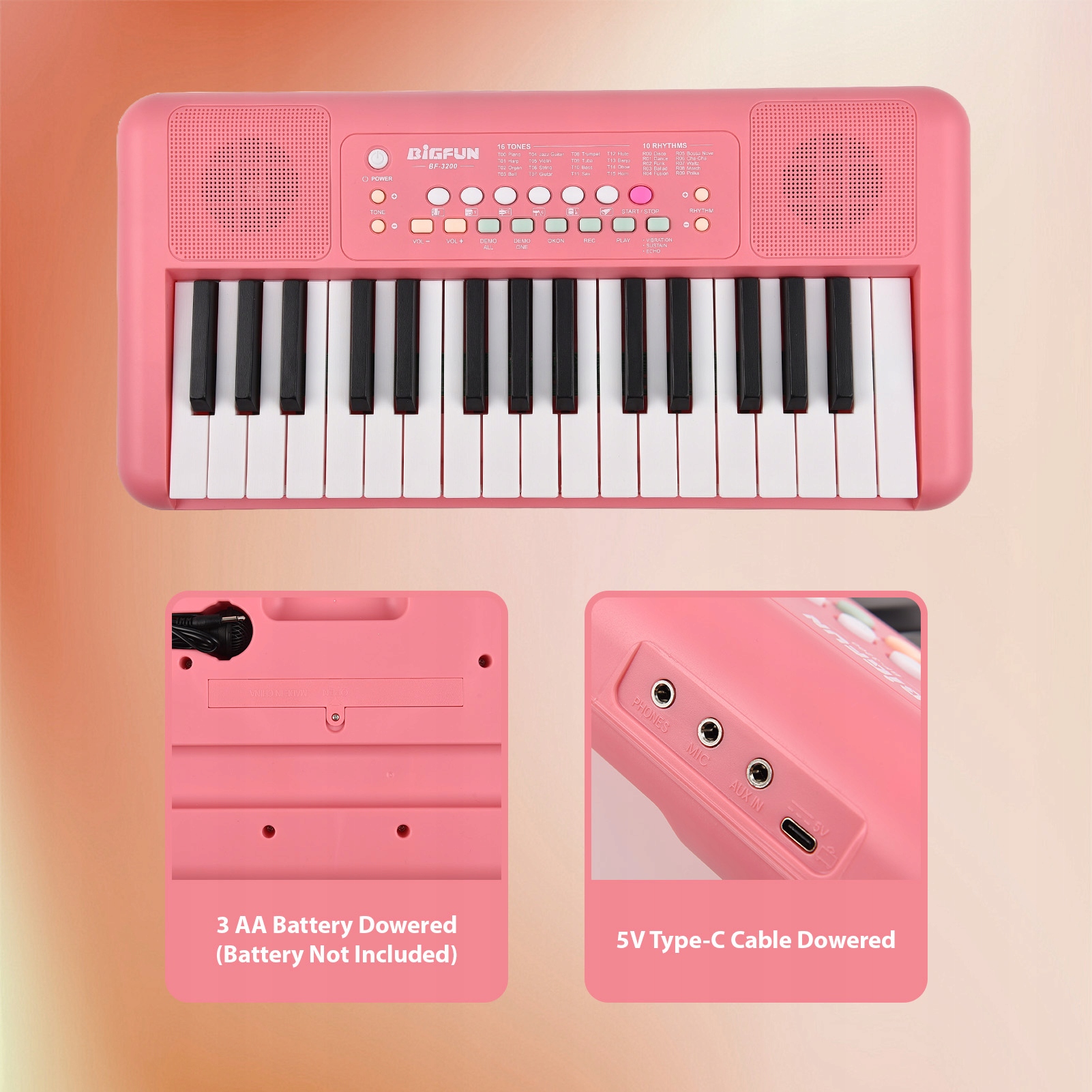 3. 【Портативный и удобный】: благодаря питанию от USB и батарей (3 батарейки типа АА не вставлены), наше клавишное пианино чрезвычайно универсально, и на нем можно играть где угодно, дома, в студии или в дороге.