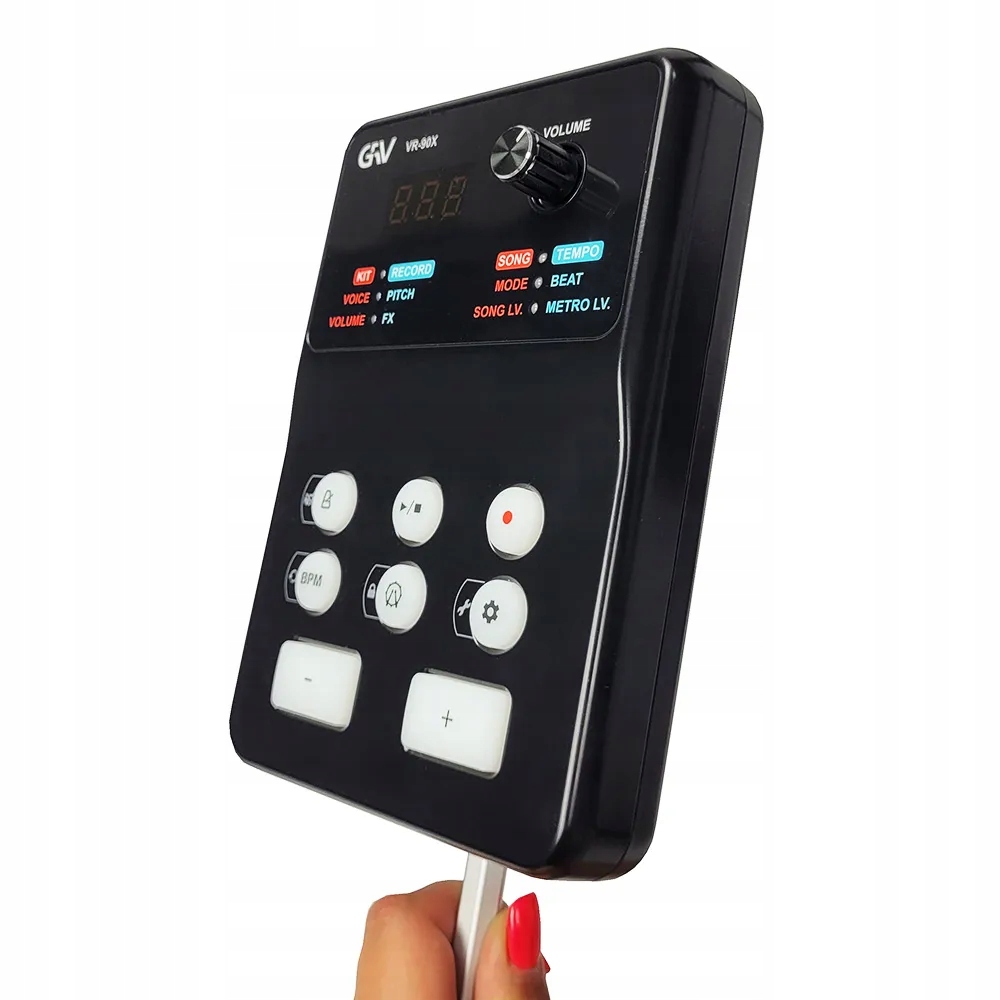 Модуль VR-90X чрезвычайно универсален и предлагает широкий спектр возможностей персонализации, таких как уровень песни, режим воспроизведения, триггер (с усилением, порогом, чувствительностью, кривой, временем маски, модификатором головки/обода, автоматический перекрестный контакт, калибровка педали) и автоматическое выключение. Кроме того, он имеет функцию записи, которая полезна как во время упражнений, так и во время занятий с группой.