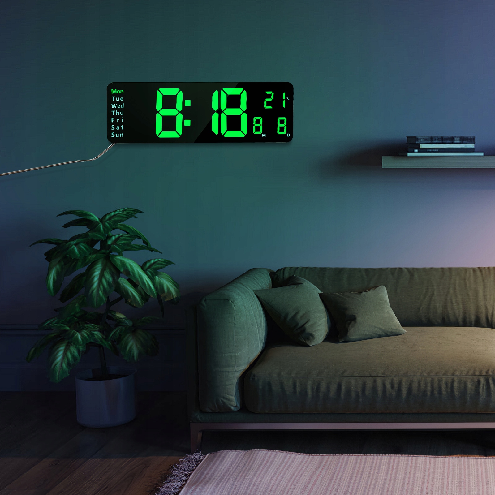 С дисплеем недели, даты и температуры, много световых цветов, два набора будильников и функция вперед/подсчет, эти цифровые светодиодные часы являются многофункциональными и практичными
