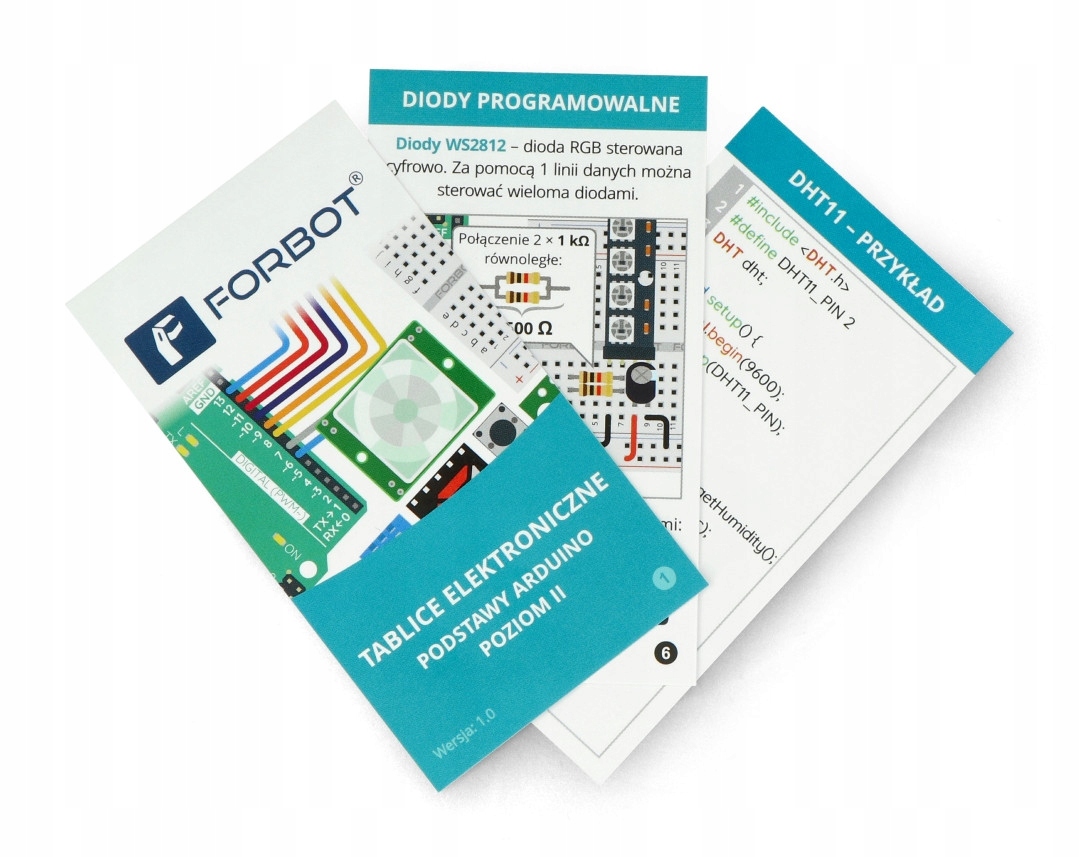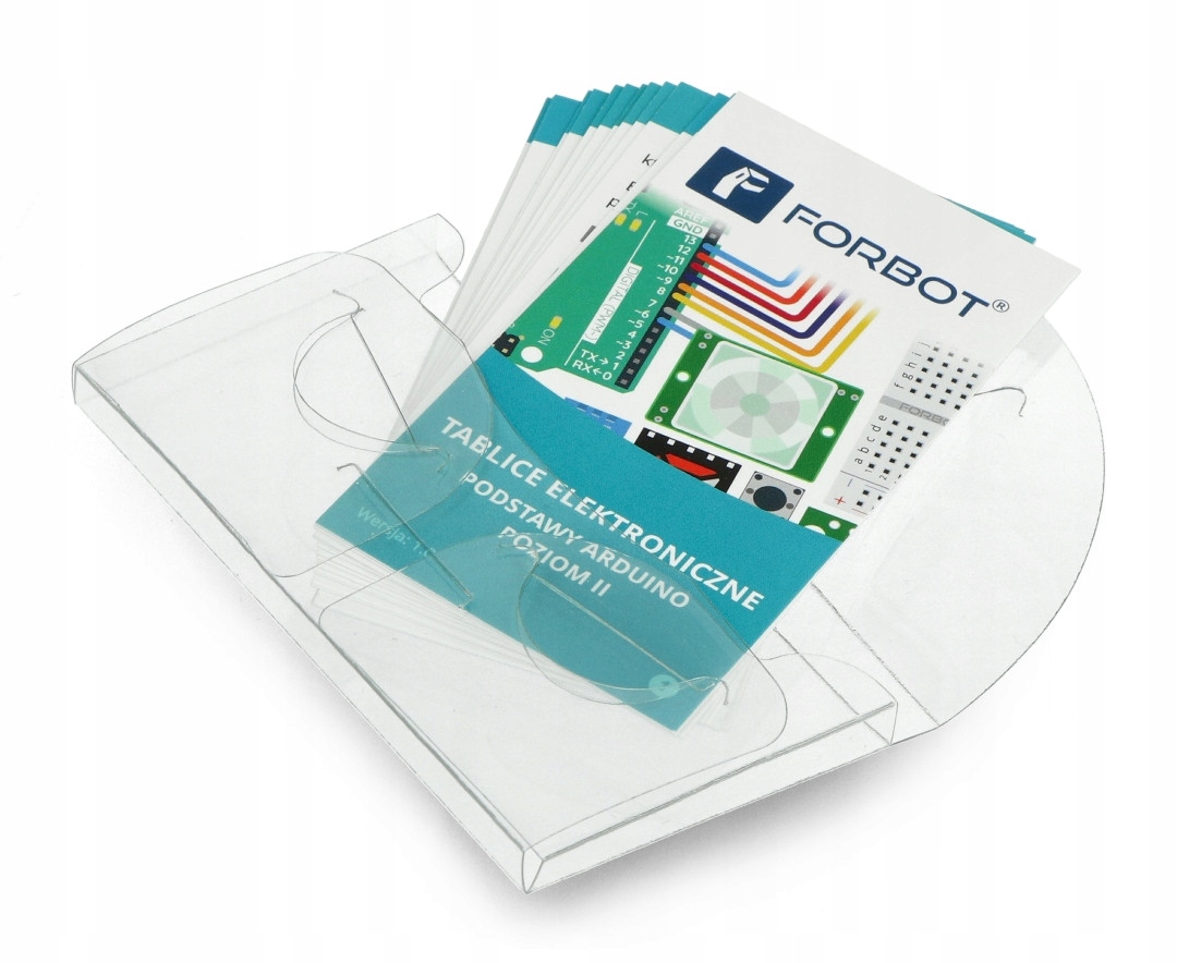 Набор из 15 удобных досок для людей, использующих Курс Arduino - уровень II, доступен на Forbot. На карточках содержится самая важная информация из содержания курса. Там вы найдете описание полезных функций, библиотек и способов подключения самых популярных датчиков.