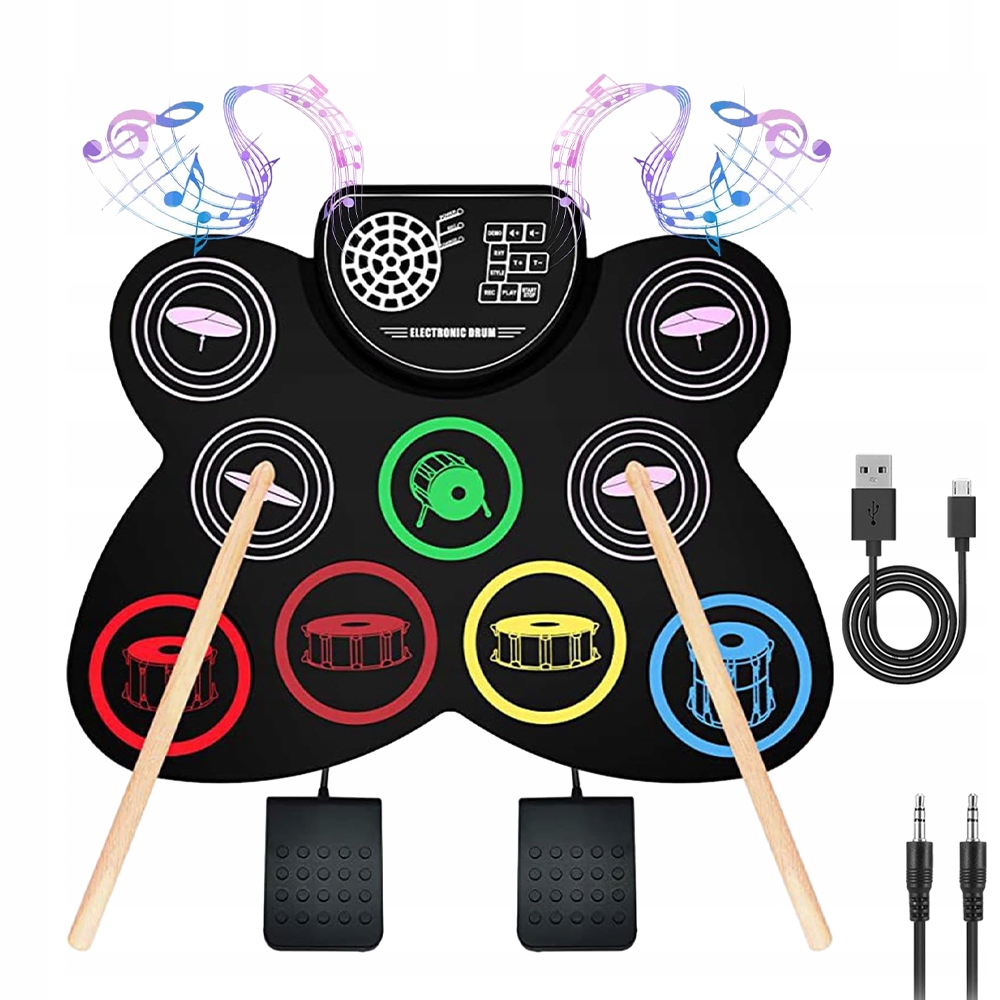 - Встроенная батарея обеспечивает до десяти часов игры на одном заряде. Изготовленный из прочного силикона, этот ударный набор можно легко свернуть, что обеспечивает удобную передачу, где бы вы ни находились.