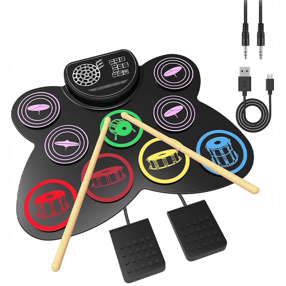 - Встроенная батарея обеспечивает до десяти часов игры на одном заряде. Изготовленный из прочного силикона, этот ударный набор можно легко свернуть, что обеспечивает удобную передачу, где бы вы ни находились.