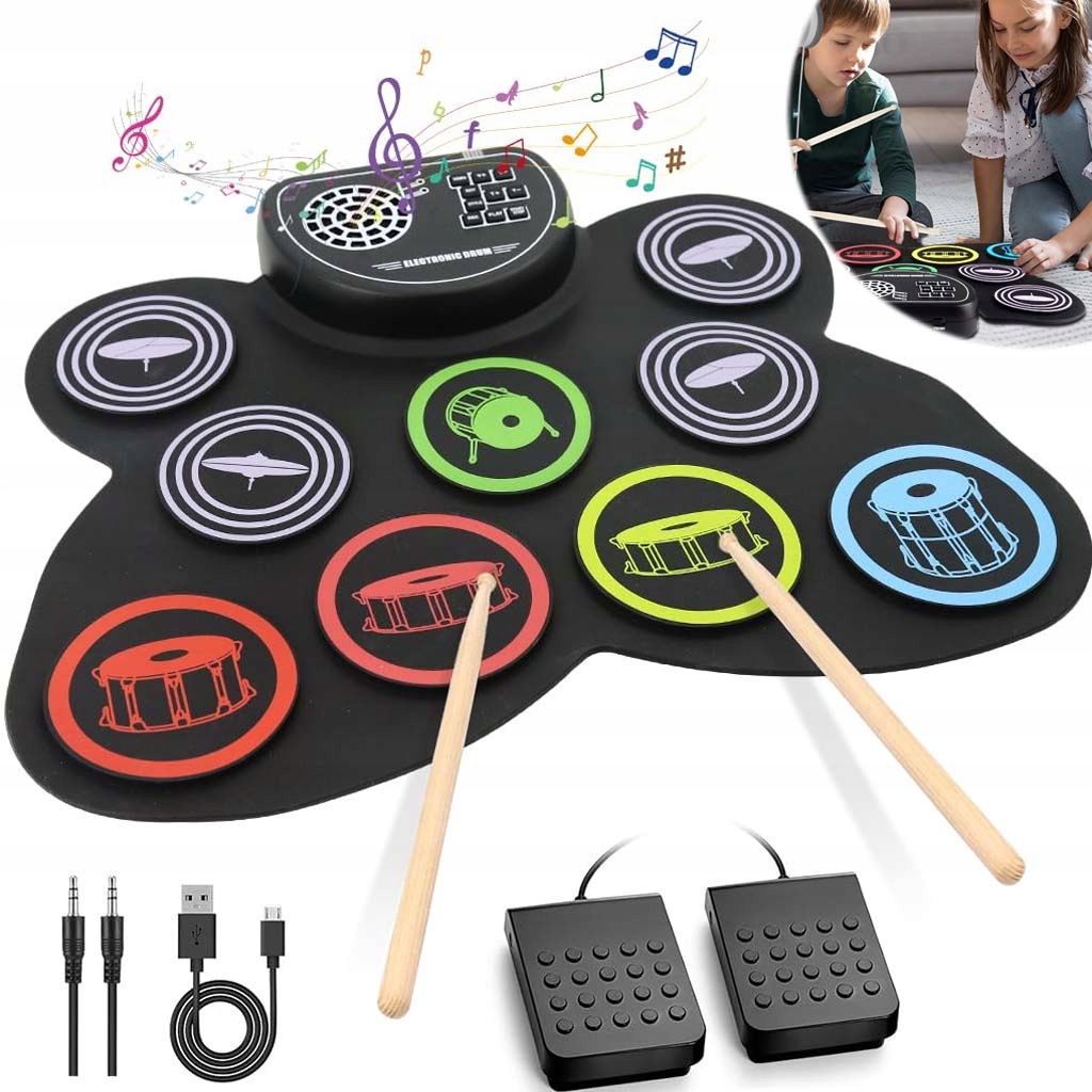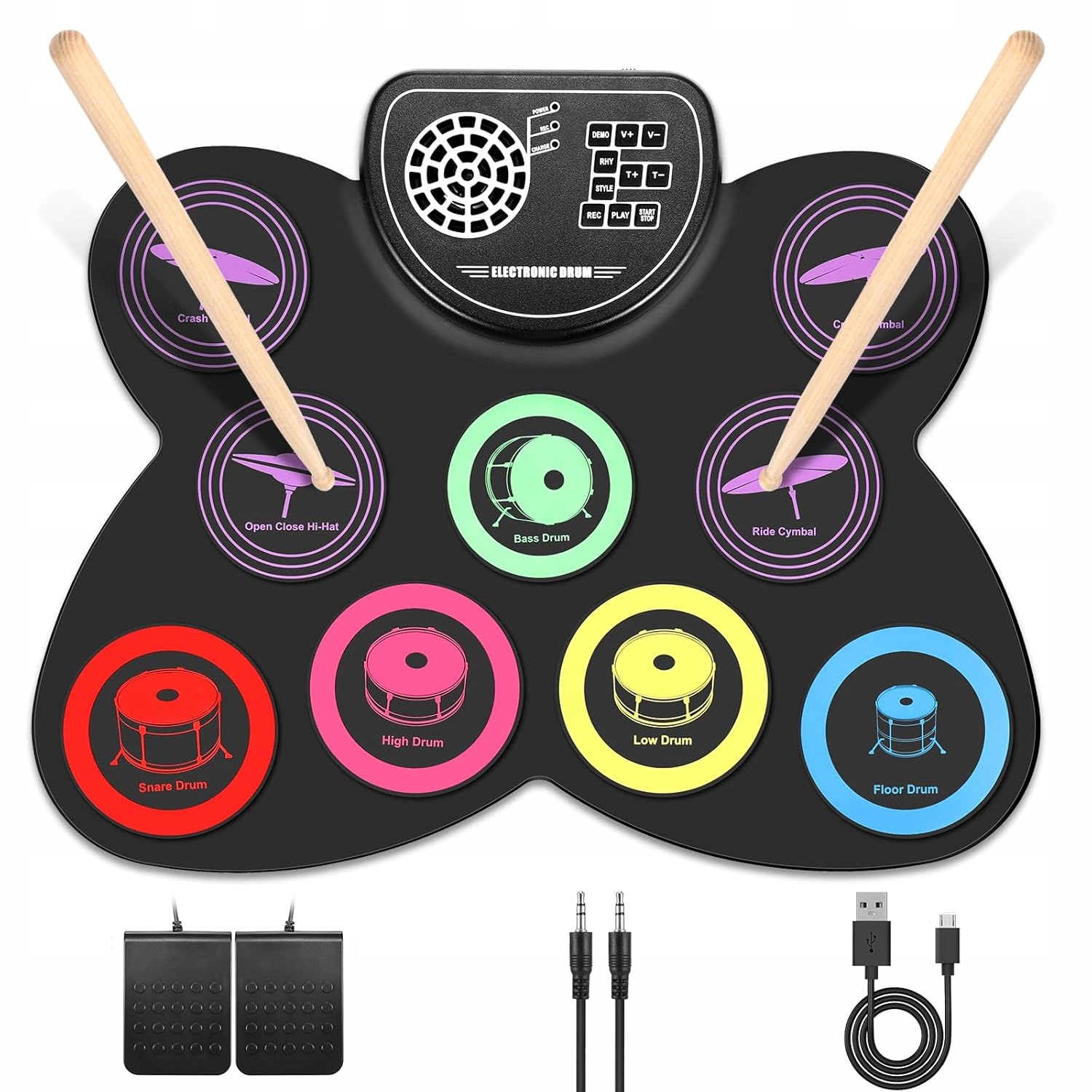 🥁🥁ЭЛЕКТРИЧЕСКАЯ УБАРАННАЯ НАБОР, УБАРАННАЯ НАБОР С 9 БАРАБАННЫМИ ПЕДАМИ, СКЛАДНАЯ УБАРАННАЯ НАБОР С РАЗЪЕМОМ ДЛЯ НАУШНИКОВ 3,5 ММ, ДЕРЕВЯННЫМИ ПАЛОЧКАМИ И ПЕДАЛАМИ ДЛЯ НАЧИНАЮЩИХ И ДЕТЕЙ🥁🥁