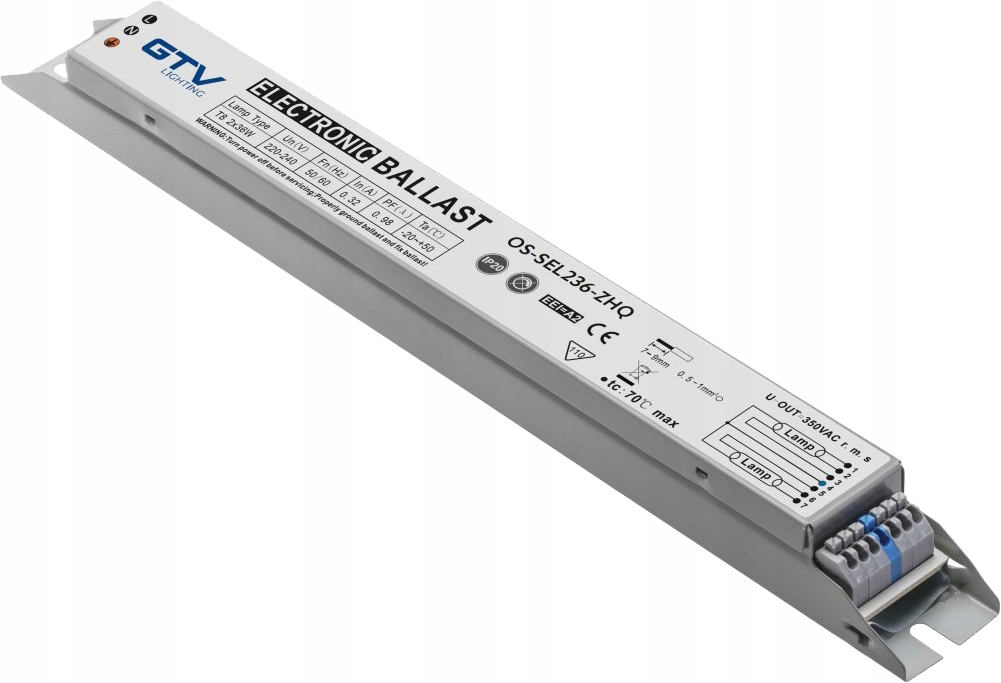 Электронный балласт для светильников 2х36Вт, T8, EEI=A2, PF>0,98, AC220-240В, 50/60Гц